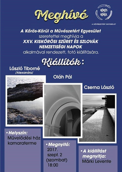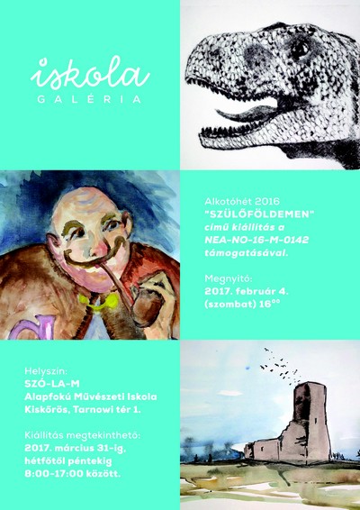 Alkotóhét 2016 - alkotásai "Szülőföldemen" c. kiállítás az Iskola Galériában 2017.02.04. Tavaly nyáron, második alkalommal rendezte meg a Körős-Körül a Művészetért Egyesület a „Szülőföldemen” elnevezésű Alkotóhetet, melynek a SZÓ-LA-M Zeneiskola adott otthont. Résztvevők: elhunyt Patai Zsuzsanna, Németh Krisztián, Csontos Gizella, Darabos Dóra, Gunda Ildikó, Haskó Anikó, Judák Gergő, Aszódi Zita, Pásztor Máté. Az Egyesület részéről: Szmutka Katalin, Vlcskó János. Az alkotásokból készült kiállítás megnyitóján elsőként Soltiné Samu Zsuzsanna köszöntötte kedves szavakkal a kiállításra érkezőket, majd megköszönte Babucsikné Zeikfalvy Anna önzetlen odaadását az Egyesület életében. Ezt követően Anna néni személyesen fejezte ki nagyrabecsülését az alkotók felé és megköszönte színvonalas munkájukat. Különös tisztelettel emlékezett meg Patai Zsuzsannáról, aki igazán különleges alkotója volt a közösségnek. - Vira Magazin A kiállítás megtekinthető a SZÓ-LA-M Zeneiskolában március 31-ig, hétfőtől péntekig 8:00-17:00 között.